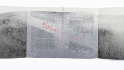 For the text, I chose two Dari words from Shazia’s final sentence placing them in a quiet space within the maelstrom of energy created by the water’s movement. Two words that embodied for me her sense of empowerment and strength. When my page in the collection is closed, the story and Dari script are hidden, we only see two words in English. It is only when the cover is opened, can we connect and hopefully understand the importance of these words to Shazia’s world.